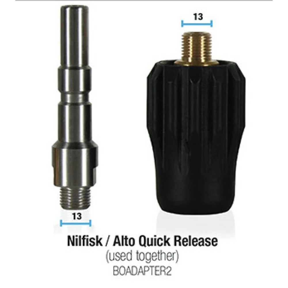 - Suitable for a range of Nilfisk/Alto quick release adapter pressure washers among others