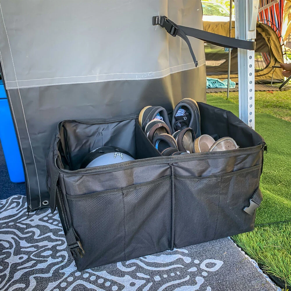 - Hook & loop system on the base attaches organiser to the boot carpet