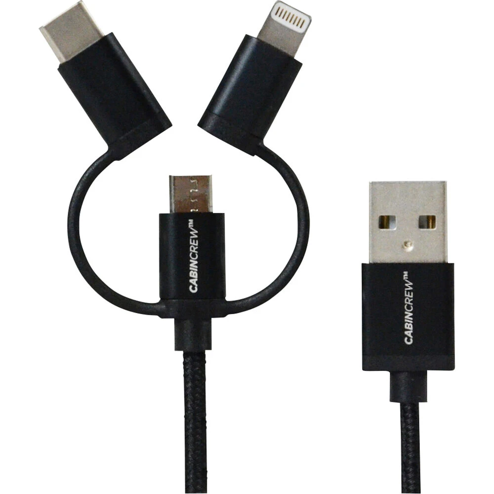 - 3-in1 charging cord to suit USB type-C, Lightning & Micro USB connections
