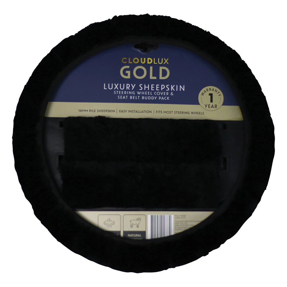 - Pack contains: sheepskin steering wheel cover & seat belt buddies