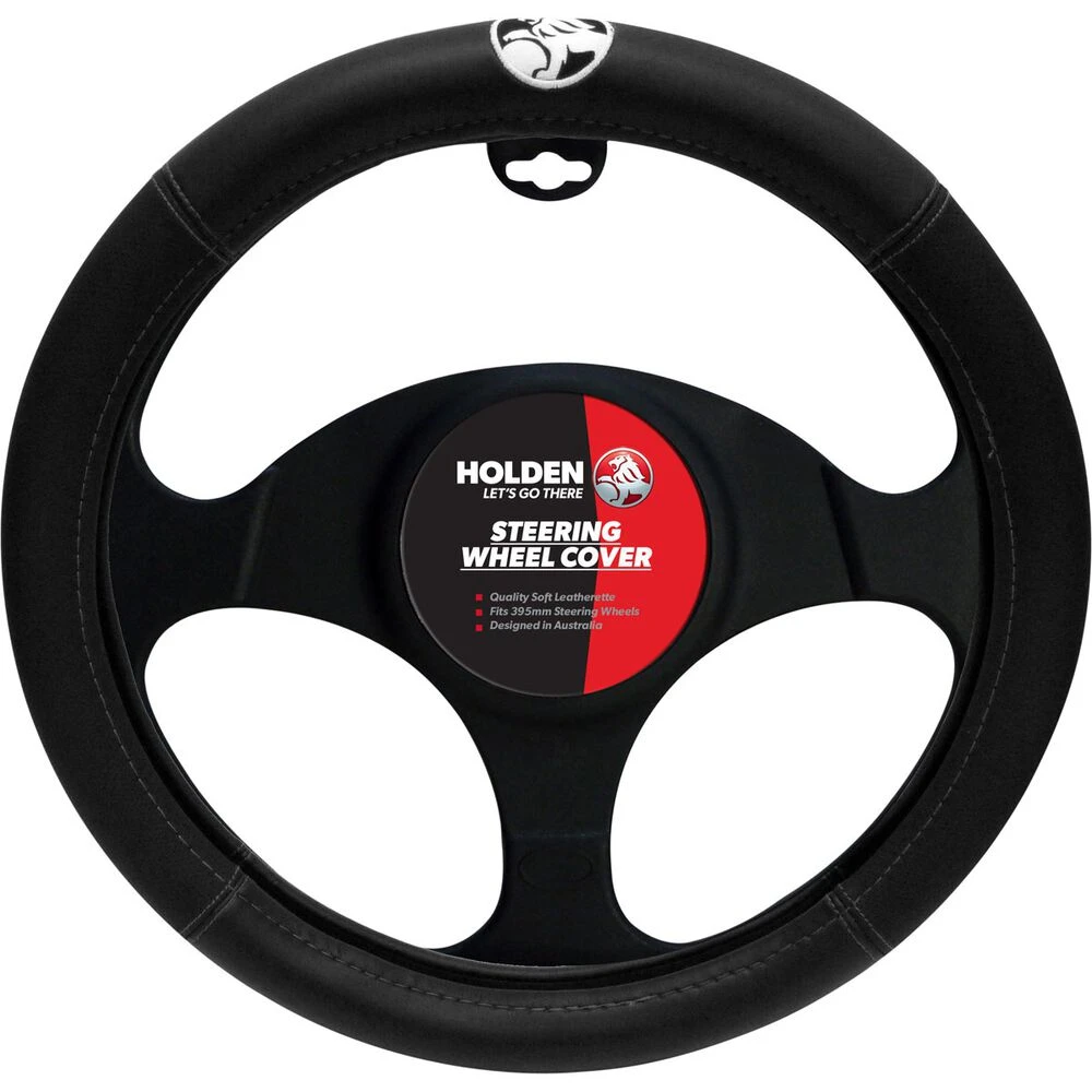 Your steering wheel sees a lot of abuse over the years of driving, heat and UV from the sun and constant abrasion from physical handling. In order to protect your steering wheel from excessive wear the installation of a steering wheel cover is a popular choice. This Holden steering wheel cover in manufactured from black leather look material and provides a similar feel to that of a standard steering wheel. The inside of the cover is coated with a grippy material to ensure it doesn’t slip on your steering wheel and is designed for wheels measuring 395mm or 15″ in diameter. This will suit a wide range of vehicles but it’s best to measure your steering wheel first to be sure.
