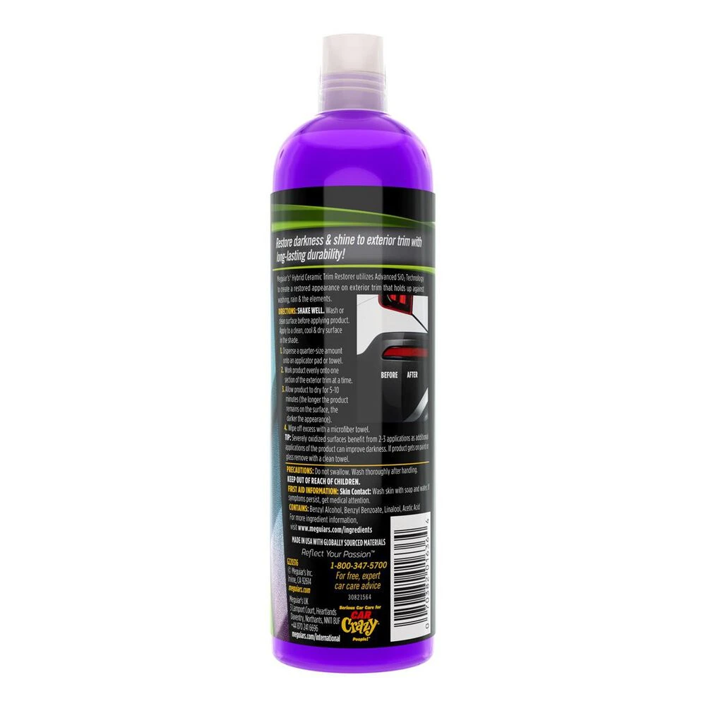 Meguiar’s Hybrid Ceramic Trim Restorer is an easy-to-apply solution to renew, revive and protect unpainted exterior trim. With hydrophobic protection delivered by its advanced SiO2 technology, Hybrid Ceramic Trim Restorer provides high resilience to washing, rain and the elements. Quickly and easily provide lasting protection for new trims, while bringing new life to all unpainted, exterior plastic, vinyl and rubber trims. The surfaces you can use Trim Restorer on can include bumpers, mouldings, door handles, rear view mirror housings and windshield cowlings. Restore faded looking exterior trims with a shine and durable richness that lasts.