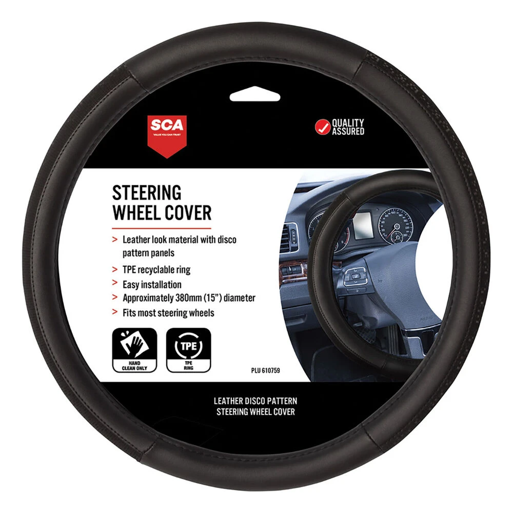 SCA Leather Look Disco Steering Wheel Cover – Black, 380mm Diameter