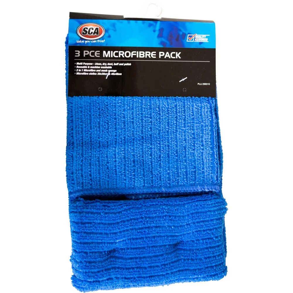 The SCA Microfibre Pack consisting of cloths and sponge is the cost-effective way to soak up spills and wash off your car, boat and around the home surfaces.This towel won’t leave any streaks behind and is machine washable and re-usable.