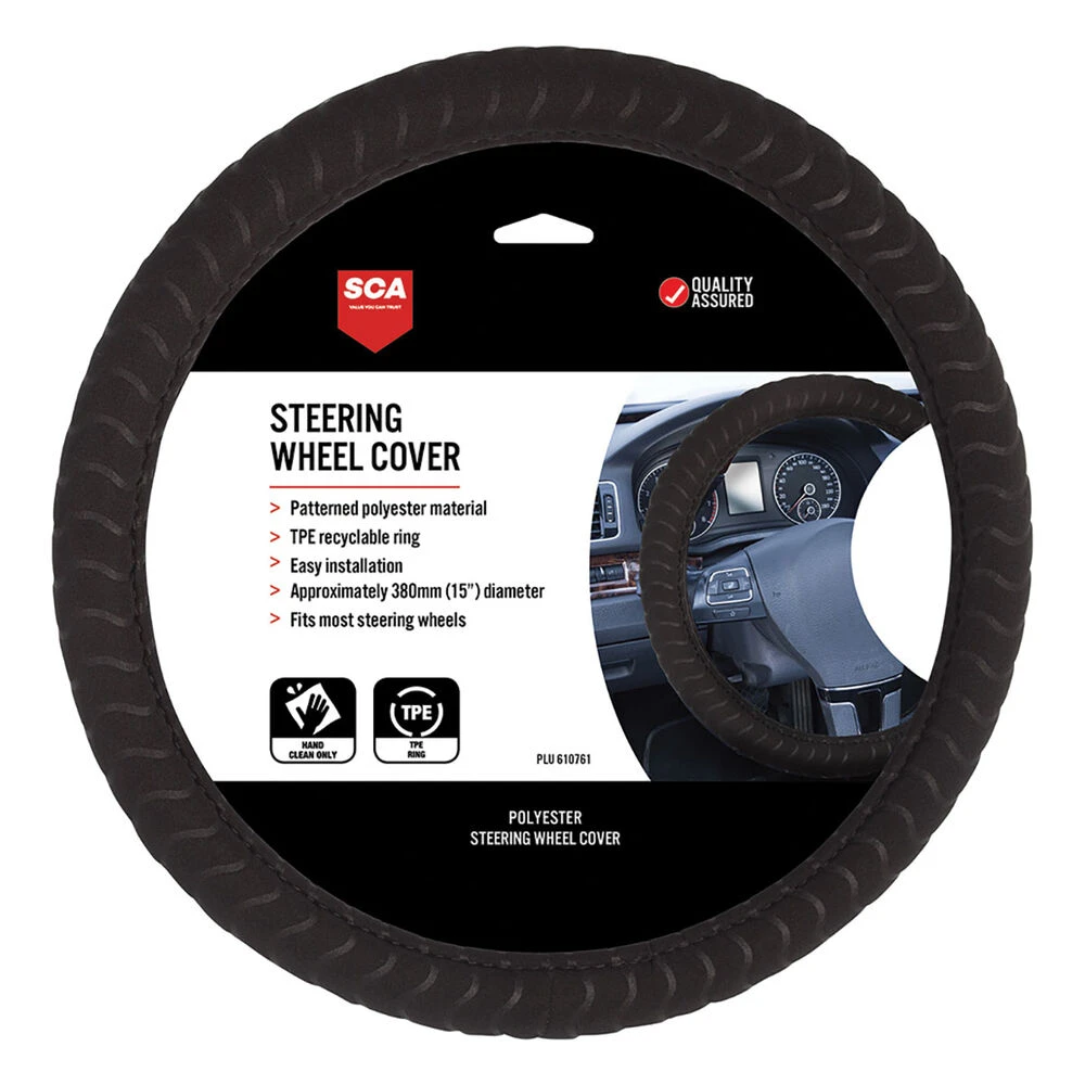 SCA Patterned Steering Wheel Cover – Black, 380mm Diameter