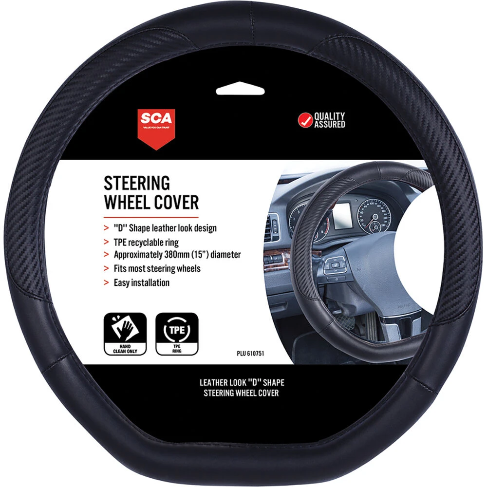 SCA Steering Wheel Cover – Leather Look, Black, D Shape