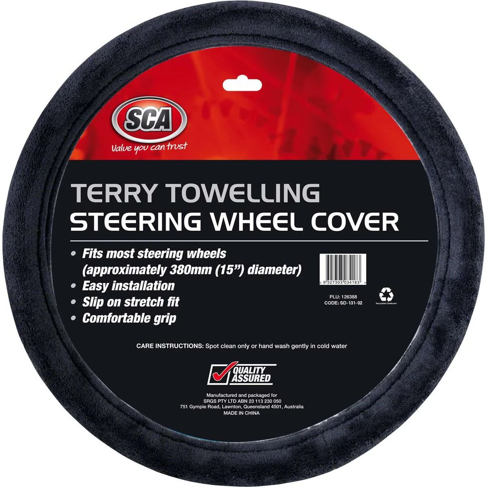 Protect your steering wheel from sun damage, keep your steering wheel cool and add some style to your interior with the SCA range of steering wheel covers. Available in a variety of styles, colours, fabrics and designs to suit everyone’s taste, SCA Steering Wheel covers are easy to fit and are designed to suit most standard vehicles with a 380mm diameter steering wheel.