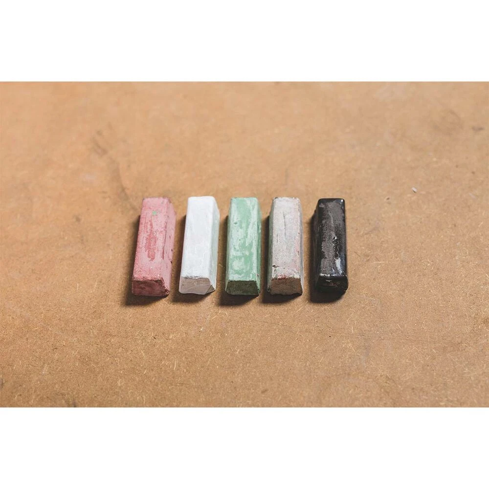 The kit includes 5 different polishing compound bars to be used with the 3 different grade polishing wheels. These wheels include a coarse wheel, a medium polishing wheel and soft rag and attach to your bench grinder using ToolPRO Attachable Spindals, which are sold separately.
